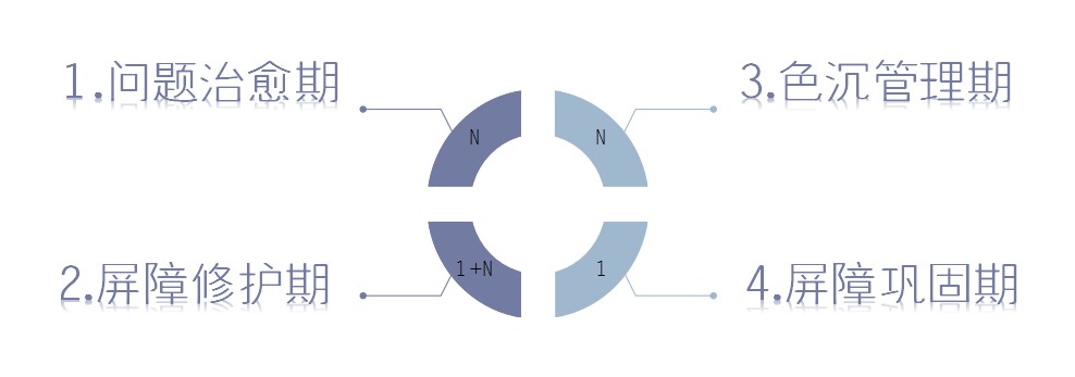 问题治愈期(6SKU)、屏障巩固期(同护理期)、色沉管理期(4SKU)和屏障护理期(6SKU)四个阶段